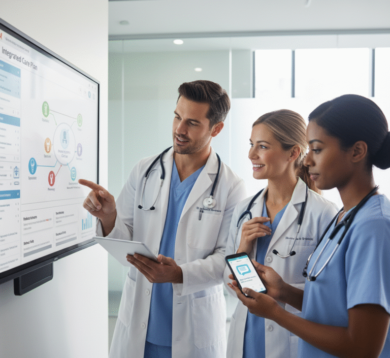 - Integrated Care Plan Management: We digitally create, manage, and share a comprehensive care plan, ensuring seamless communication and coordination across all providers and specialists involved in the patient’s care.
